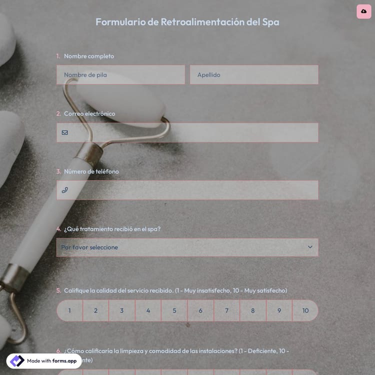 Este formulario de retroalimentación del spa es gratuito y personalizable