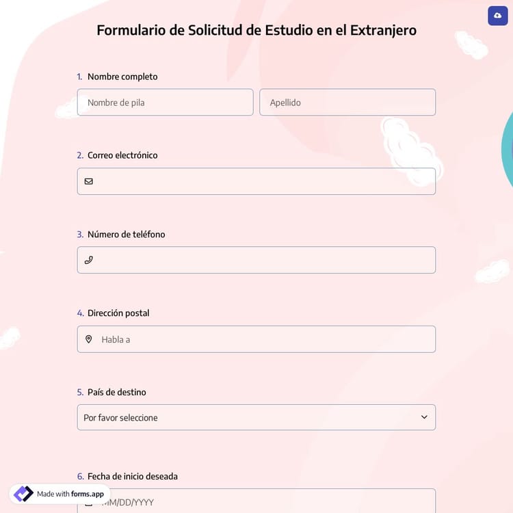 Estudiar en el extranjero es una gran oportunidad para los estudiantes. Todo lo que necesita hacer para recopilar solicitudes fácilmente es crear un formulario si desea ofrecer esta oportunidad. Cree formularios increíbles eligiendo uno de los modelos en forms.app. ¡Es gratis para todos!