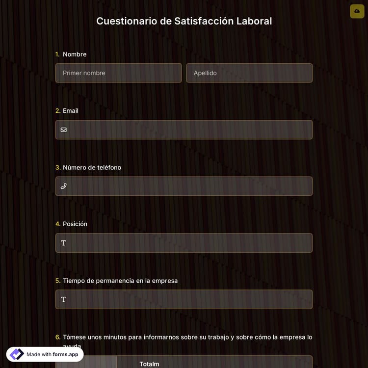 Los empleadores, gerentes y profesionales de relaciones humanas a menudo realizan encuestas para tener un ojo en su organización. Los cuestionarios de satisfacción laboral, por ejemplo, se realizan para obtener comentarios de los empleados. El uso de un formulario en línea hará que el proceso sea mucho más fácil. Y para eso, forms.app se complace en ayudarlo.