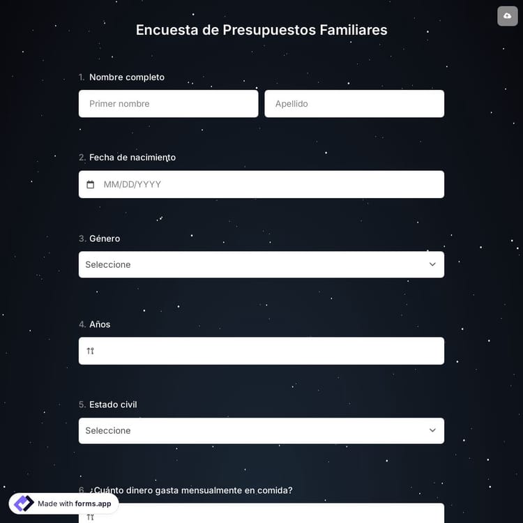Visualiza este plantilla de encuesta de presupuestos familiares y haz clic en "usar plantilla" después de asegurarte de que es lo que estás buscando.