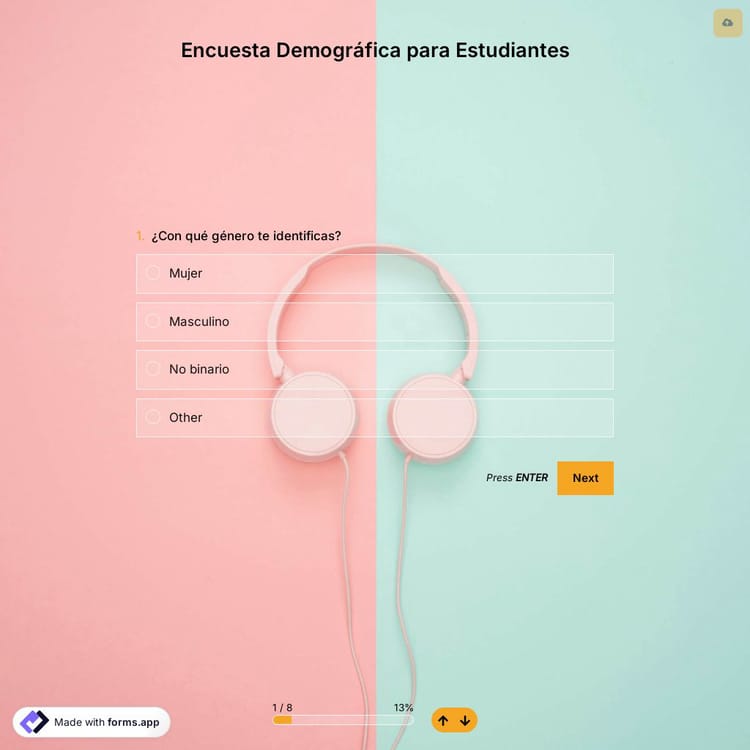 Conocer los antecedentes de tus alumnos traerá muchas ventajas en las clases. Esto es especialmente cierto para las clases en las que no conoce el nivel educativo de sus estudiantes. Con una encuesta demográfica para estudiantes en línea, puede recopilar fácilmente la información necesaria sobre ellos. Utilice ahora la plantilla gratuita de encuestas demográficas para estudiantes de forms.app y mejore el resultado educativo!