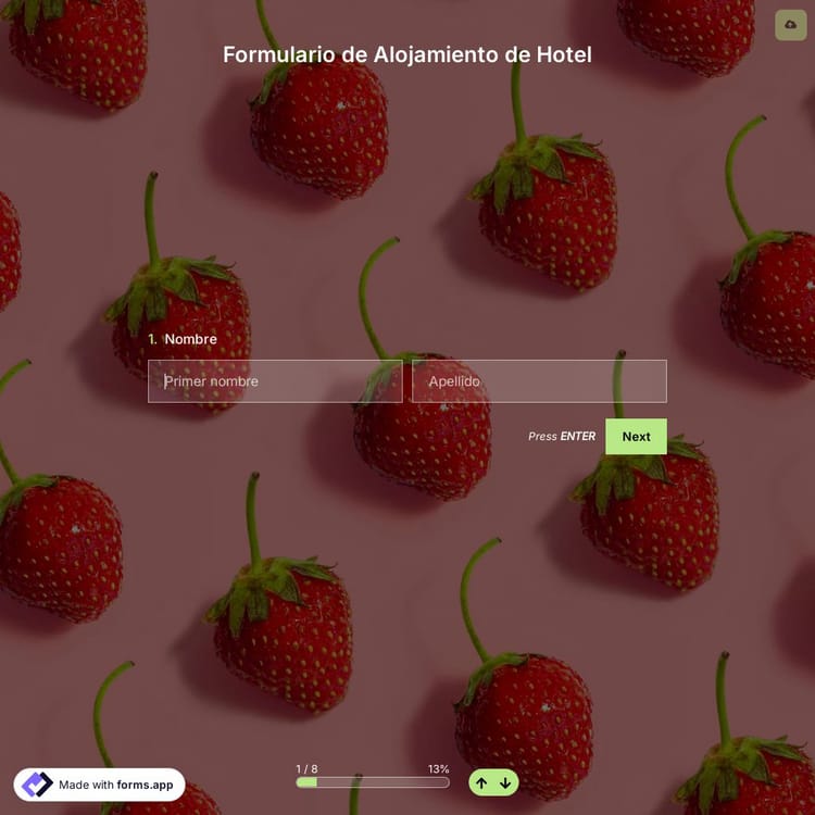 Este plantilla de formulario de alojamiento de hotel es gratuito y personalizable
