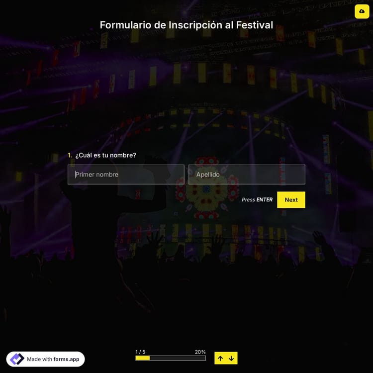 Este plantilla de formulario de inscripción al festival es gratuito y personalizable