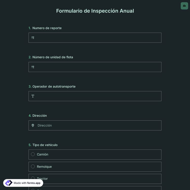 Ya sea para vehículos, edificios, tiendas u otros lugares, un formulario de inspección anual en línea puede hacer maravillas para su negocio. Con un formulario de informe de inspección, puede registrar sus evaluaciones e inspecciones con un par de clics. ¡Comience a crear su formulario personalizado ahora usando la increíble plantilla de formulario de inspección anual de forms.app!