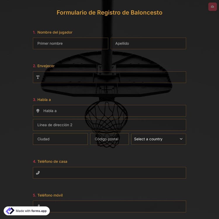 ¿Cómo diseñar un formulario de registro de baloncesto en forms.app?