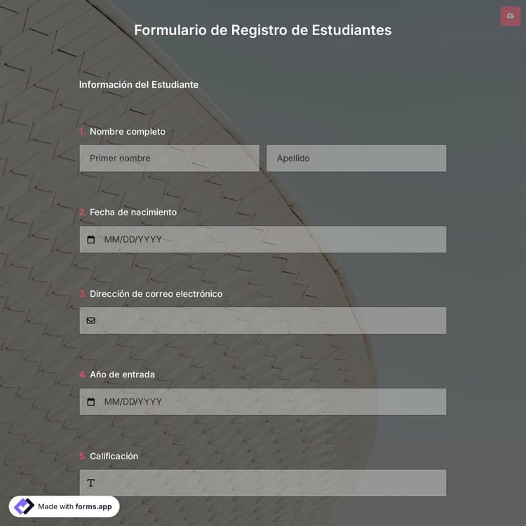 Un formulario de registro de estudiantes ayuda a los estudiantes a registrarse para un curso o un evento relacionado con la educación. Utilice nuestra plantilla de formulario de registro de estudiante gratuito para crear fácilmente un formulario de registro para su curso o evento.