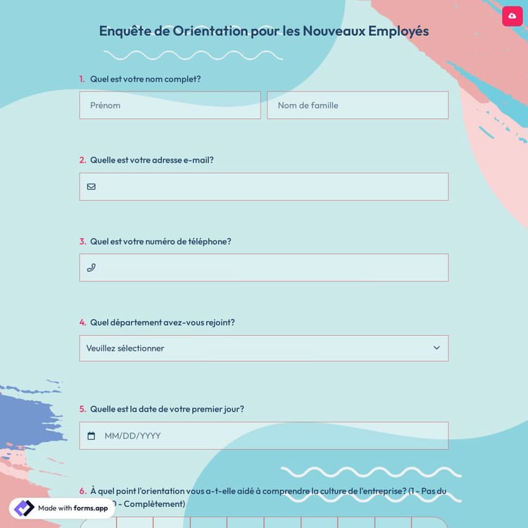 Un sondage d'orientation pour les nouveaux employés est un outil précieux pour recueillir les commentaires sur le processus d'orientation et identifier les domaines à améliorer. En demandant aux nouveaux employés leur satisfaction globale, l'efficacité des documents de formation, le soutien qu'ils ont reçu et leurs recommandations, vous pouvez créer des programmes d'orientation plus réussis à l'avenir.