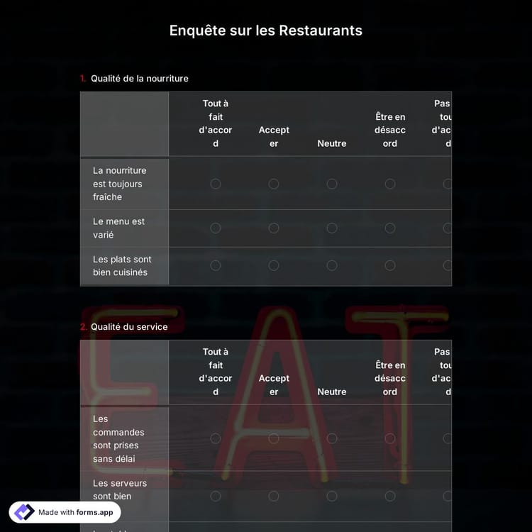 Cette enquête sur les restaurants est gratuite et personnalisable