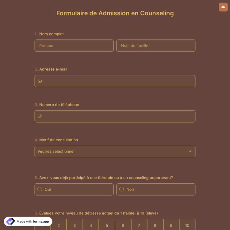 Formulaire de Admission en Counseling