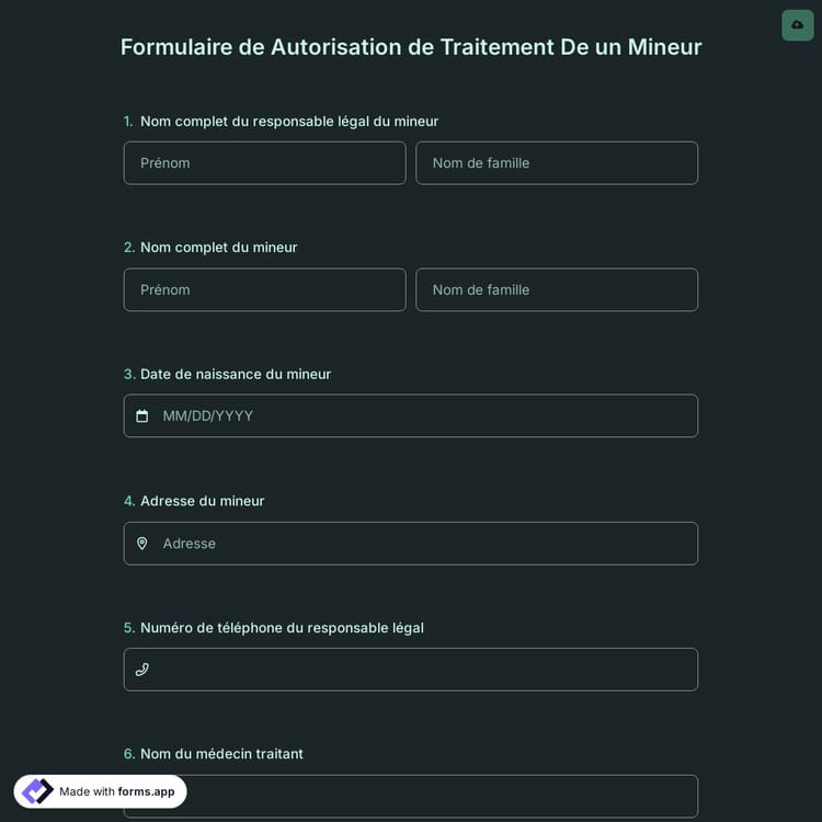 Questions fréquemment posées sur Formulaire de Autorisation de Traitement De un Mineur?