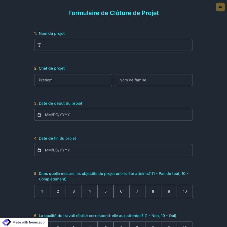 Cette formulaire de clôture de projet est gratuite et personnalisable