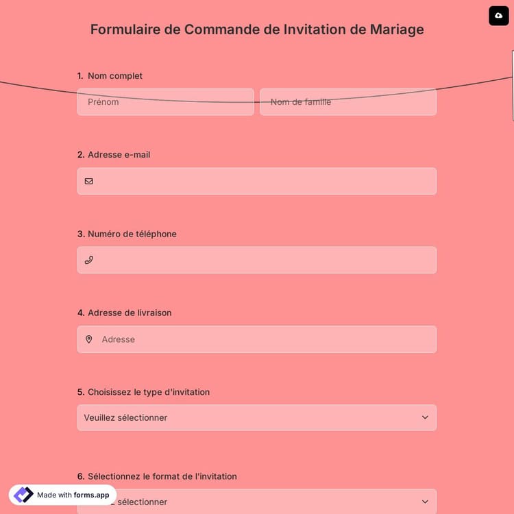 Consultez ce formulaire de commande de invitation de mariage et cliquez sur « utiliser le modèle » après vous être assuré que c’est bien ce que vous recherchez.