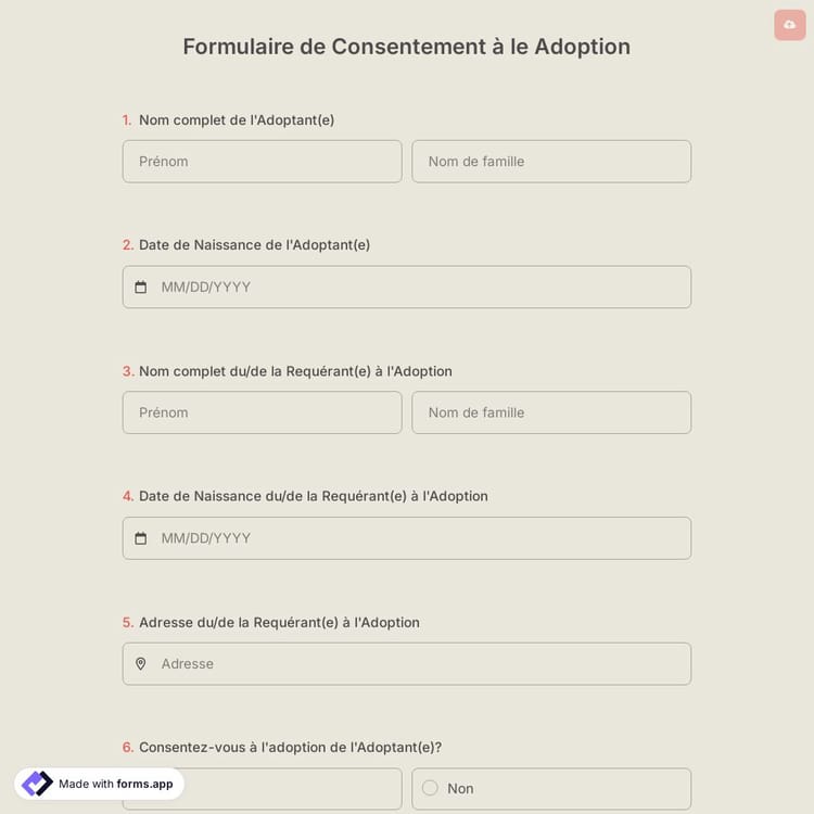 Qu'est-ce qu'un formulaire de consentement à l'adoption en ligne?