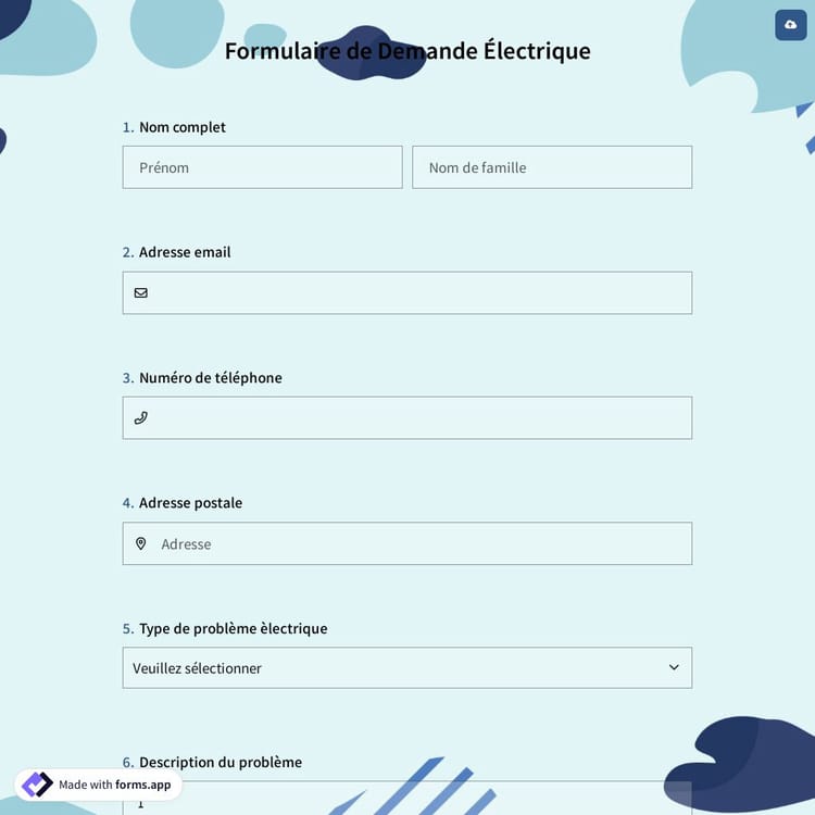 Cette formulaire de demande électrique est gratuite et personnalisable