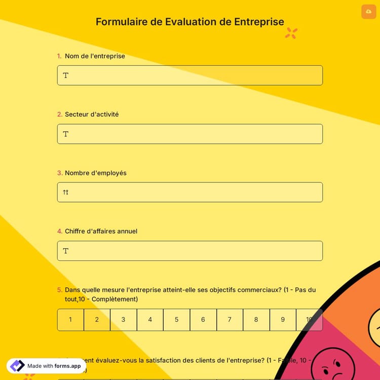 Cette formulaire de evaluation de entreprise est gratuite et personnalisable