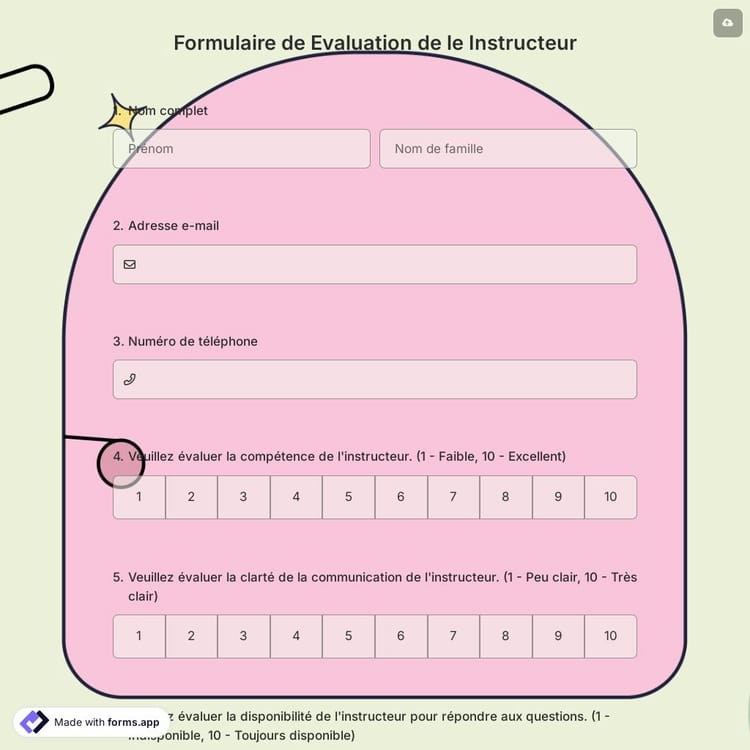 Le formulaire d'évaluation d'instructeur est un document en ligne que les instructeurs appliquent aux étudiants. Les étudiants peuvent évaluer leurs professeurs ou enseignants en utilisant le formulaire d'évaluation d'instructeur. Ce formulaire d'évaluation aide les étudiants à fournir des commentaires sur leurs instructeurs, ce qui est essentiel pour améliorer les problèmes éducatifs. Vous pouvez utiliser ce modèle de formulaire d'évaluation d'instructeur en quelques secondes.