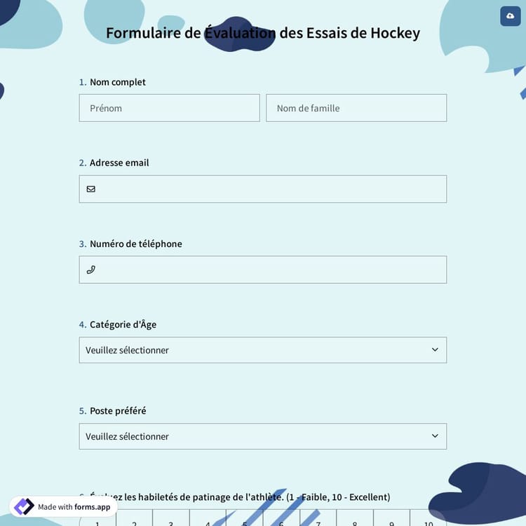 Consultez ce formulaire de évaluation des essais de hockey et cliquez sur « utiliser le modèle » après vous être assuré que c’est bien ce que vous recherchez.