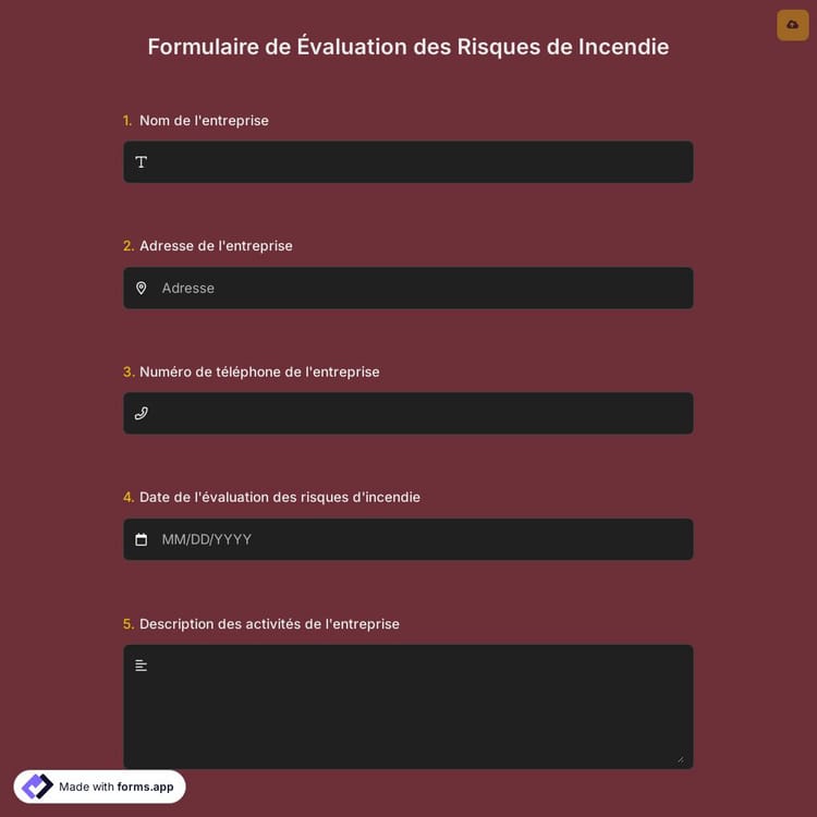 Meilleures pratiques lors de la création d'un formulaire d'évaluation des risques d'incendie