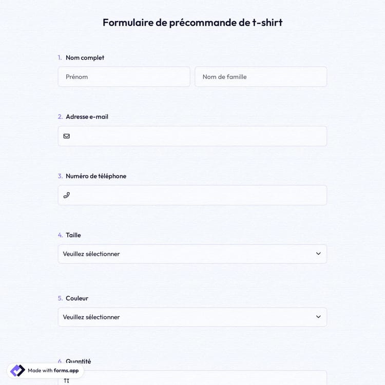 Cette formulaire de précommande de t-shirt est gratuite et personnalisable