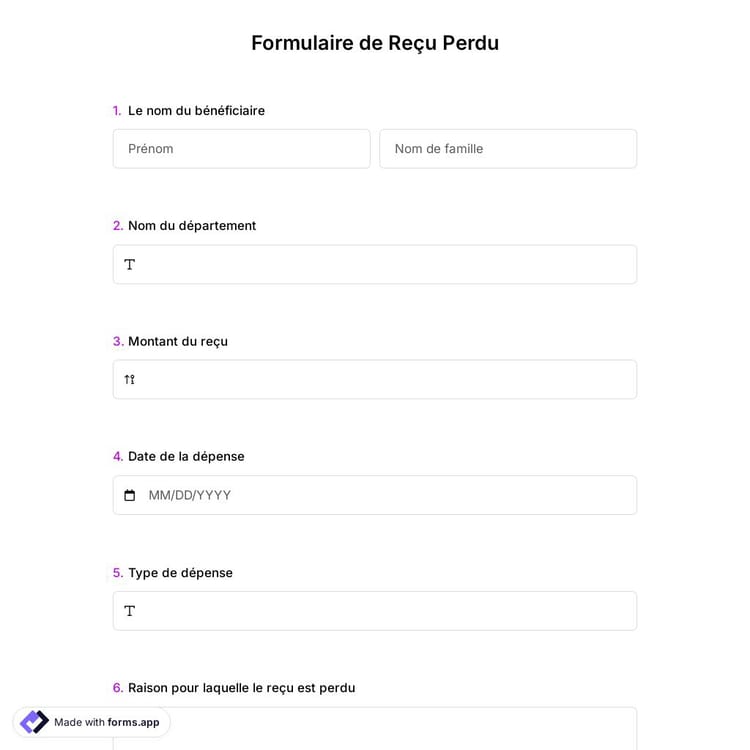 Questions fréquemment posées sur Formulaire de Reçu Perdu?