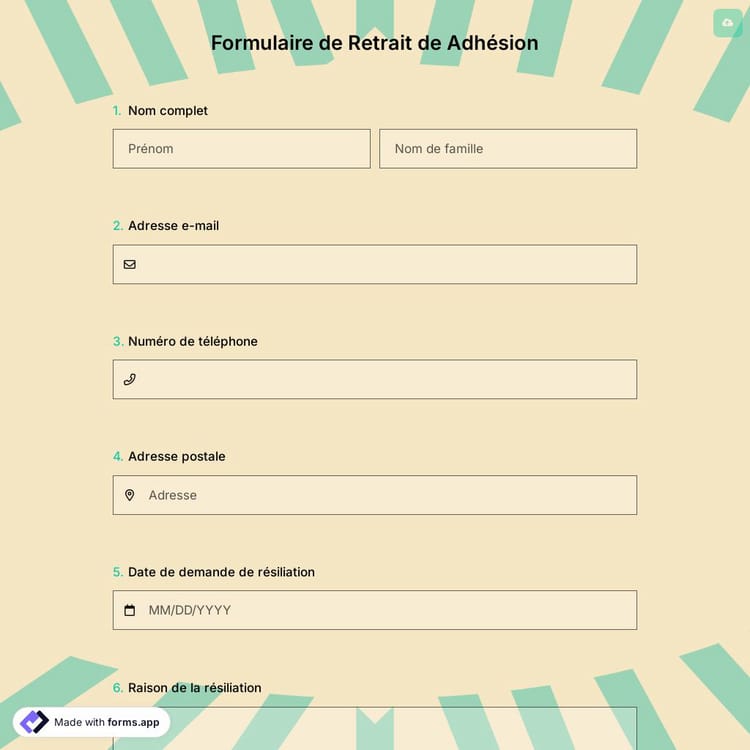 Cette formulaire de retrait de adhésion est gratuite et personnalisable