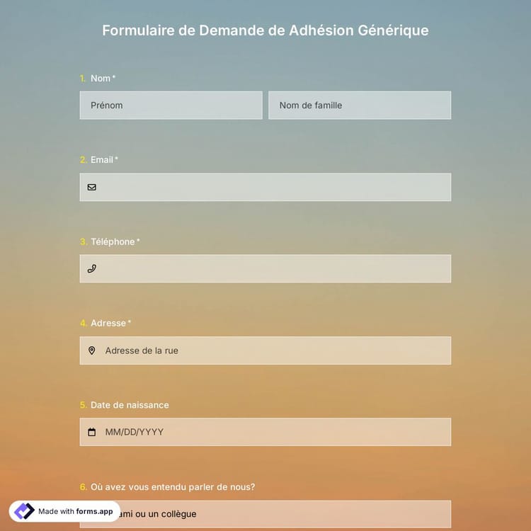 Cette modèle de formulaire de demande de adhésion générique est gratuite et personnalisable