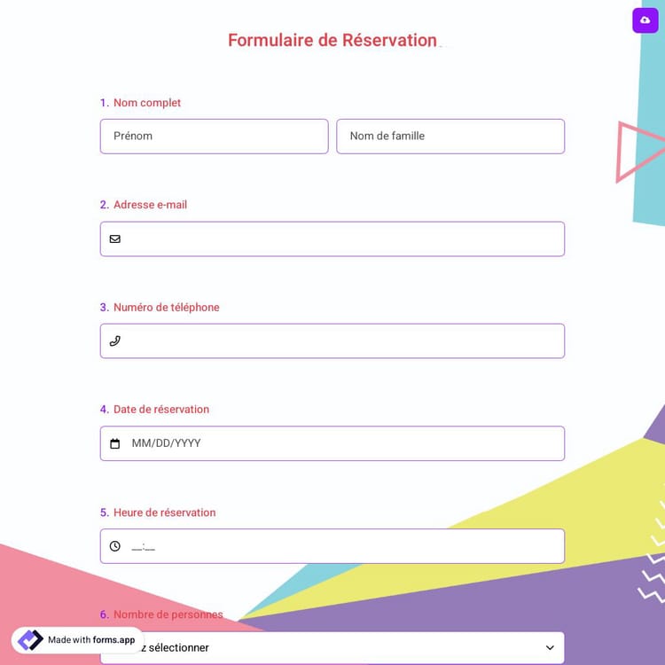 Oui, vous pouvez utiliser forms.app comme système de réservation. forms.app est un outil puissant qui vous permet de créer des formulaires et des enquêtes personnalisés. Vous pouvez utiliser l'application pour gérer votre processus de réservation et collecter des informations auprès de vos clients. Si vous cherchez un moyen de gérer vos réservations et de collecter des informations auprès de vos clients, forms.app est la solution parfaite.