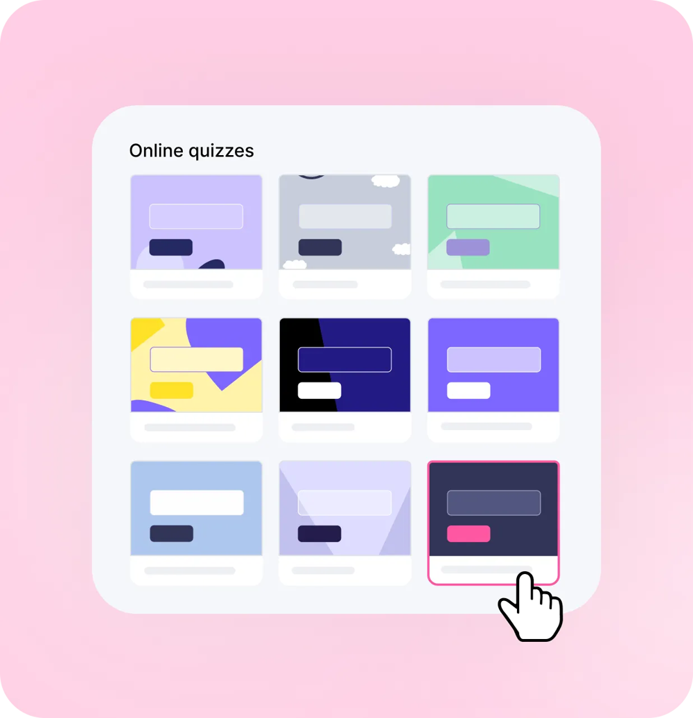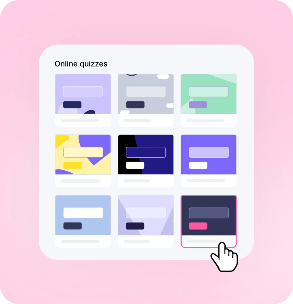 Siapkan kuis berkualitas tinggi dengan memilih dari ratusan contoh kuis gratis di forms.app. Semua templat sepenuhnya dapat disesuaikan, sehingga Anda dapat membuat kuis benar-benar milik Anda dengan mengedit pertanyaan, menambahkan gambar, mengubah hasil akhir yang mungkin, dan banyak lagi.