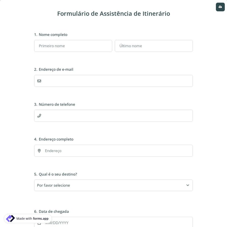 Crie formulários online com facilidade, personalize os campos, o design e as opções de privacidade do seu formulário em alguns minutos. Ao adicionar alguns dos muitos tipos de campos de formulário para todas as necessidades com a tela do criador de formulários de arrastar e soltar do forms.app, você também pode criar pesquisas e exames online.