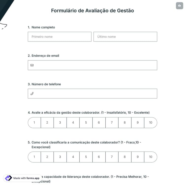 Este formulário de avaliação de gestão é gratuito e personalizável
