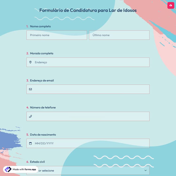 Formulário de Candidatura para Lar de Idosos