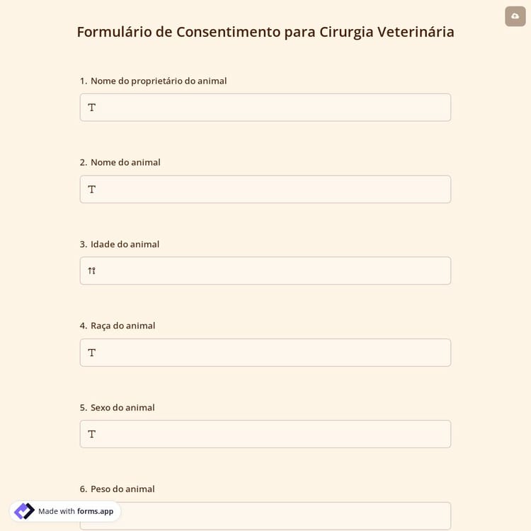 Um formulário de consentimento para cirurgia veterinária é um documento que os proprietários de animais devem assinar antes de seus animais passarem por uma operação na clínica veterinária. Com este formulário de consentimento, os veterinários podem obter rapidamente documentos relacionados à autorização para operar em animais.