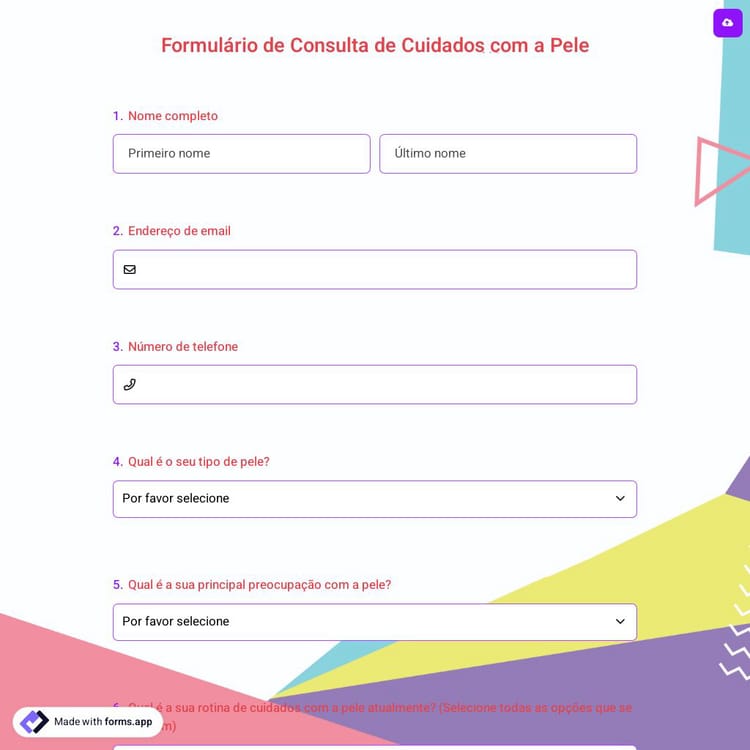 Perguntas frequentes sobre Formulário de Consulta de Cuidados com a Pele?
