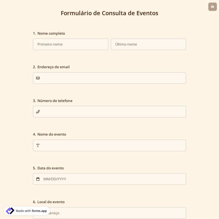 Veja este formulário de consulta de eventos e clique em "usar modelo" depois de se certificar de que é isso que você está procurando.