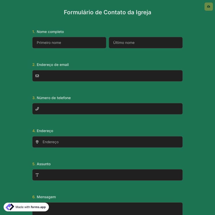 Veja este formulário de contato da igreja e clique em "usar modelo" depois de se certificar de que é isso que você está procurando.