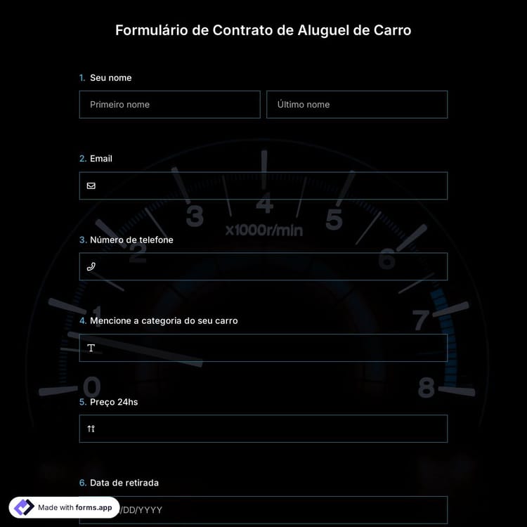 Formulário de Contrato de Aluguel de Carro