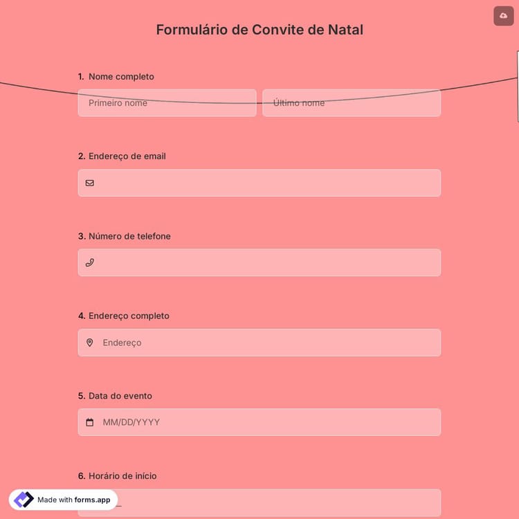 Para criar um formulário de convite de Natal com o fundo e o tema perfeitos, não procure mais do que forms.app! Você pode criar e personalizar seu formulário em menos de um minuto. Comece a construir seu formulário usando o modelo de formulário de convite de Natal grátis abaixo!