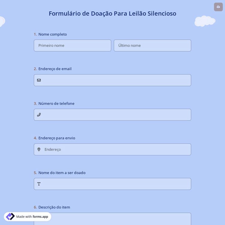 Este formulário de doação para leilão silencioso é gratuito e personalizável