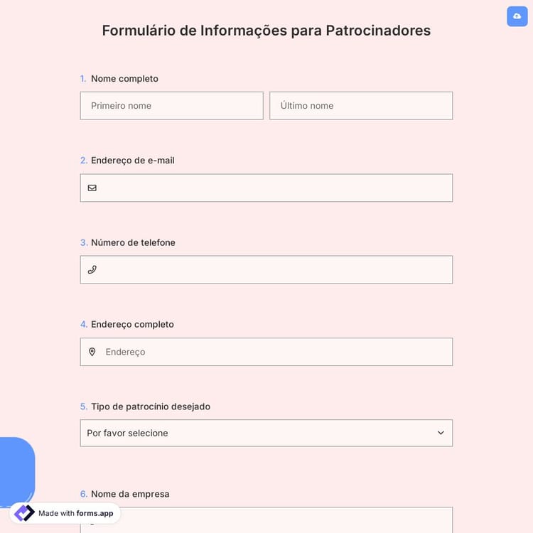 Este formulário de informações para patrocinadores é gratuito e personalizável
