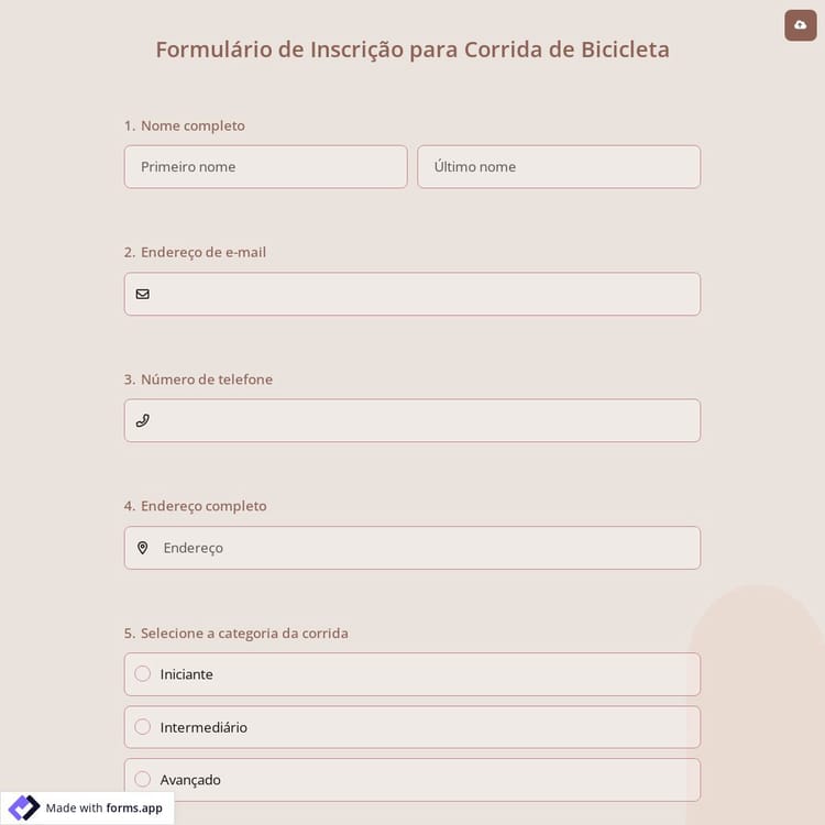 Veja este formulário de inscrição para corrida de bicicleta e clique em "usar modelo" depois de se certificar de que é isso que você está procurando.