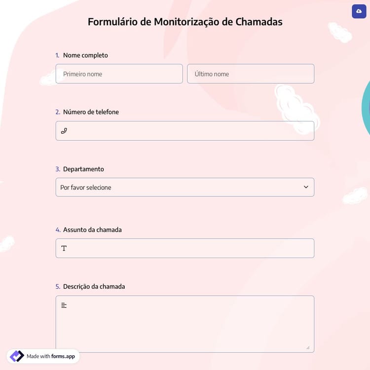 Você sabe o que precisa fazer para fornecer um melhor serviço aos seus clientes em seu call center? Usando um modelo de formulário de monitoramento de chamadas, você pode permitir que seus clientes avaliem o serviço que estão recebendo. Comece a usar o forms.app para criar formulários personalizados!