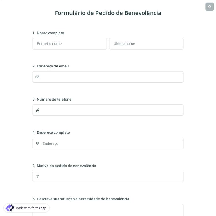 Um formulário de solicitação é um documento usado para aceitar solicitações de seus clientes, funcionários, alunos ou de qualquer pessoa, dependendo de onde você trabalha. Por meio de um formulário de solicitação, você pode aceitar solicitações de folga, solicitações de orçamento, solicitações de doações e muitos outros tipos de solicitações. Ao fazer tudo isso online, você pode ter uma visão geral das solicitações recebidas e coletar dados dos respondentes sobre suas solicitações.