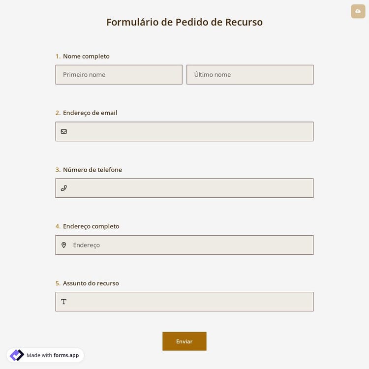 Formulário de Pedido de Recurso
