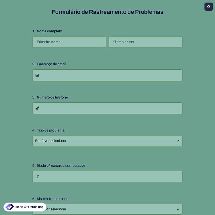 Abra este modelo de formulário de acompanhamento de problemas e comece a personalizar as perguntas. Escolha os tipos de perguntas e opções e edite-os como desejar. Você pode usar vários campos valiosos, como imagens, números, telefones, etc. Depois de terminar sua edição, você pode simplesmente compartilhar seu formulário de acompanhamento de problemas aqui. Escolha uma das opções de compartilhamento. Você pode compartilhá-lo por e-mail, link, mídias sociais ou um código QR.