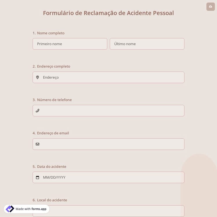 Este formulário de reclamação de acidente pessoal é gratuito e personalizável