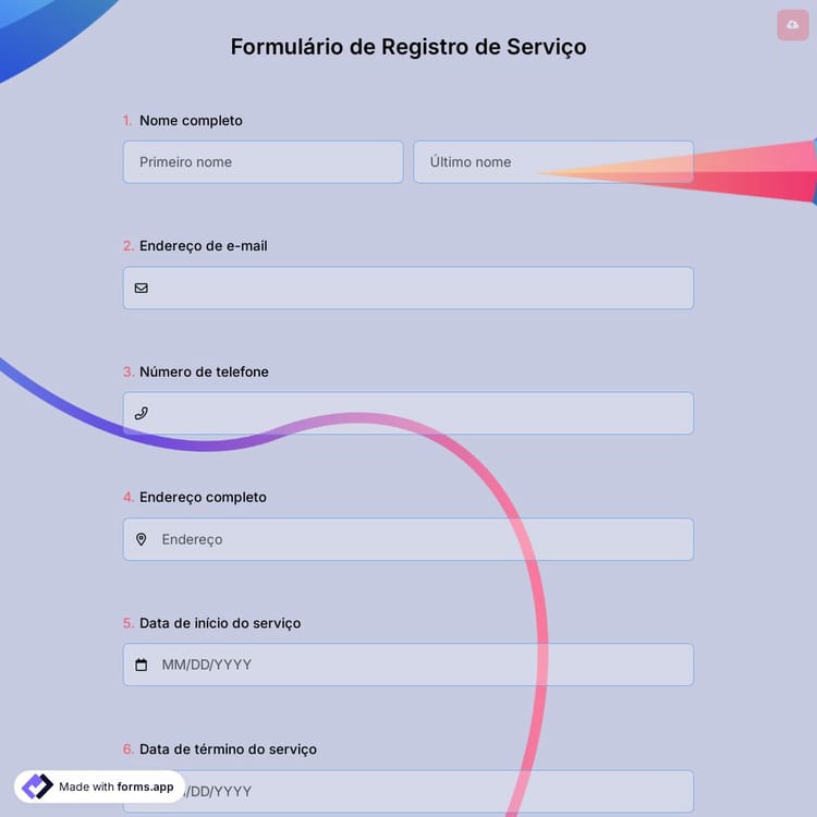 Deixe que nossos modelos façam tarefas para você e permita que você se concentre mais nas partes críticas de seus formulários e pesquisas, como campos de formulário, perguntas e personalização de design. Com mais de 5000 modelos, forms.app permite que você crie um formulário que você precisa e personalize-o de acordo com suas necessidades usando nosso criador de formulário.