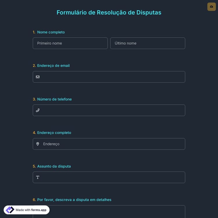 Veja este formulário de resolução de disputas e clique em "usar modelo" depois de se certificar de que é isso que você está procurando.