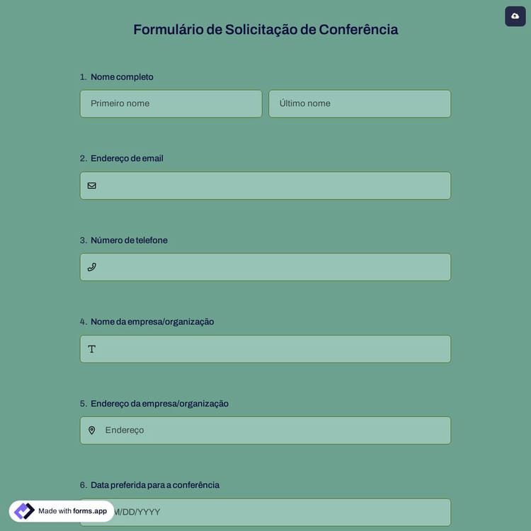 Veja este formulário de solicitação de conferência e clique em "usar modelo" depois de se certificar de que é isso que você está procurando.