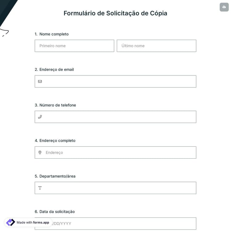 Se você é um estudante e precisa de cópias de recursos para seus projetos, este formulário será útil em seu trabalho. Usando o modelo de formulário de solicitação de cópia, você pode incorporar o formulário em seu site sem precisar de conhecimento em codificação e permitir que os alunos solicitem confortavelmente.