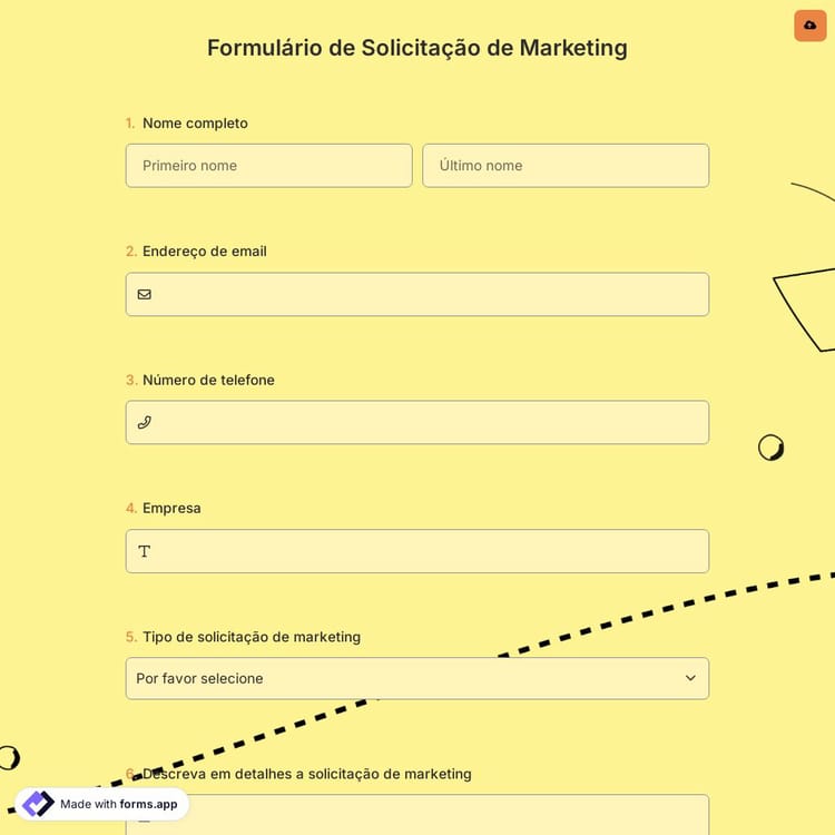 Este formulário de solicitação de marketing é gratuito e personalizável